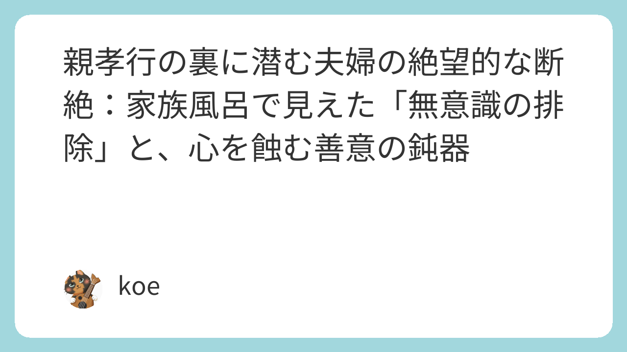 夫の言葉は、彼の「善意(親孝行)」を遂行する際、その行為が「妻の心」に与える影響を計算する、最小限の認知コストすら払わなかった結果です。