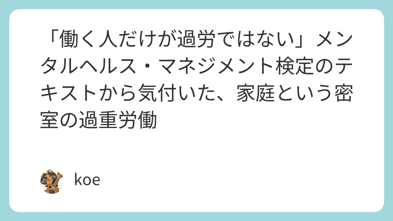 ※本記事は、筆者自身の過去の経験と、メンタルヘルス・マネジメント検定(MHMK)の学習を通じて得た知識に基づく、家庭内における「労働の構造」についての個人的な考察を述べるものです。