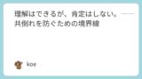 私の寄り添いたいという気持ちを人質に取られて、相手の希望通りの私を演じているだけになっていくのではないか?という不安が芽生えてしまいました。
