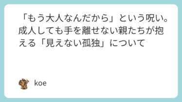 「もう大人なんだから」という呪い。成人しても手を離せない親たちが抱える「見えない孤独」について