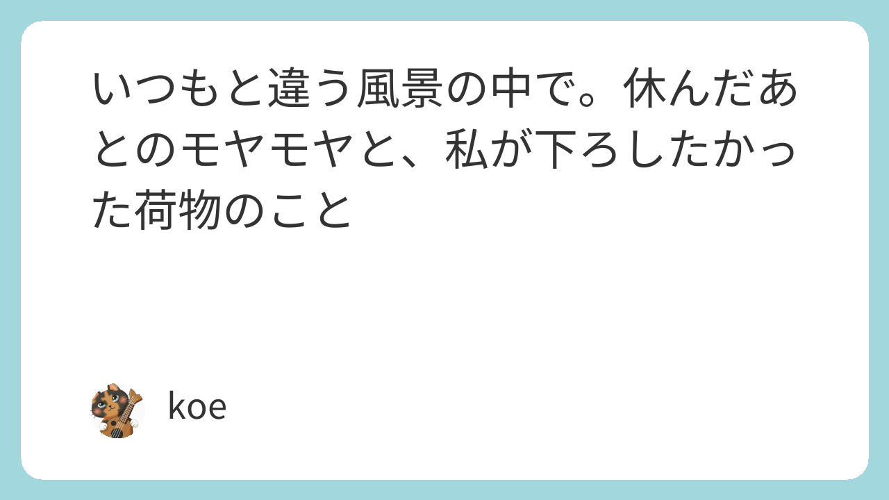 内面・心理 いつもと違う風景の中で。休んだあとのモヤモヤと、私が下ろしたかった荷物のこと