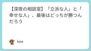 ココロノコエ 【対談】もし相手の心の声が聞こえたら? 「知らぬが仏」の本当の意味をバードとアリアが思考実験 「もし相手の心の声が聞こえたら?」をテーマに、「30秒ルール」や「カクテルパーティ効果」を例に思考実験し、雑念だらけの心の声よりも、相手が選び抜いた「言葉」を受け取ることの大切さを考察します。 2025.11.09 ココロノコエ
