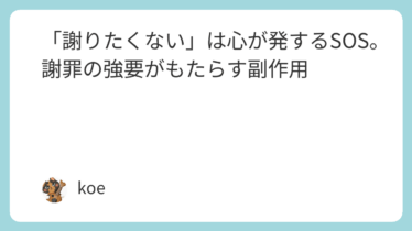 内面・心理 「謝りたくない」は心が発するSOS。謝罪の強要がもたらす副作用 悪いと分かっていても謝れない」のは性格のせいではありません。それは心理的リアクタンスと防衛機制による、心のSOSかもしれません。謝罪を巡る苦しみから抜け出し、自分と相手との信頼関係を見直すための心理学エッセイ 2025.11.27 内面・心理