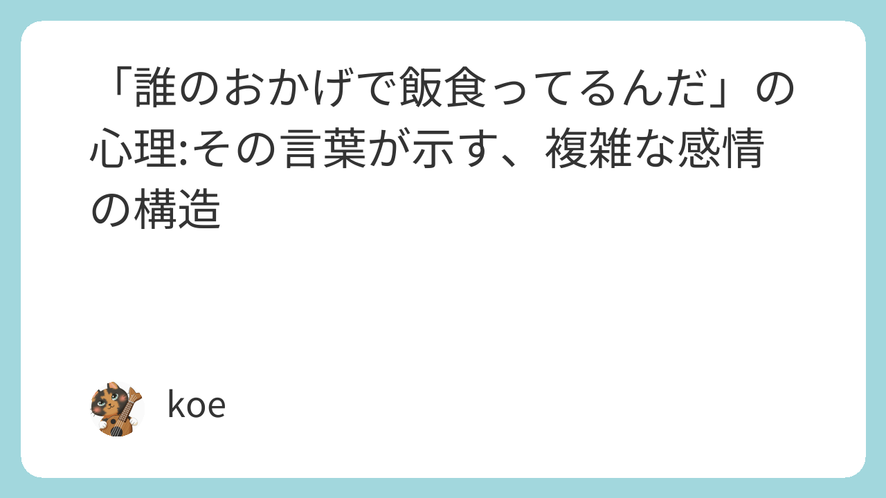 考察 「誰のおかげで飯食ってるんだ」の心理:その言葉が示す、複雑な感情の構造 「誰のおかげで飯食ってるんだ」という言葉に隠された優越感、支配欲、そして被害者意識を解説。この言葉が人間関係を蝕む構造を考察します。 2025.09.12 考察