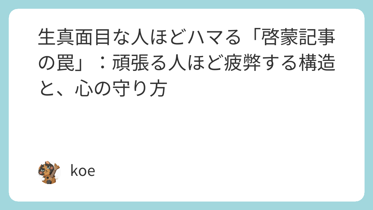この記事は、過去にそうした記事でモヤっとした経験から、なぜ、頑張っている人ほど「啓蒙記事」に心を乱されてしまうのかを、静かに考察したものです。